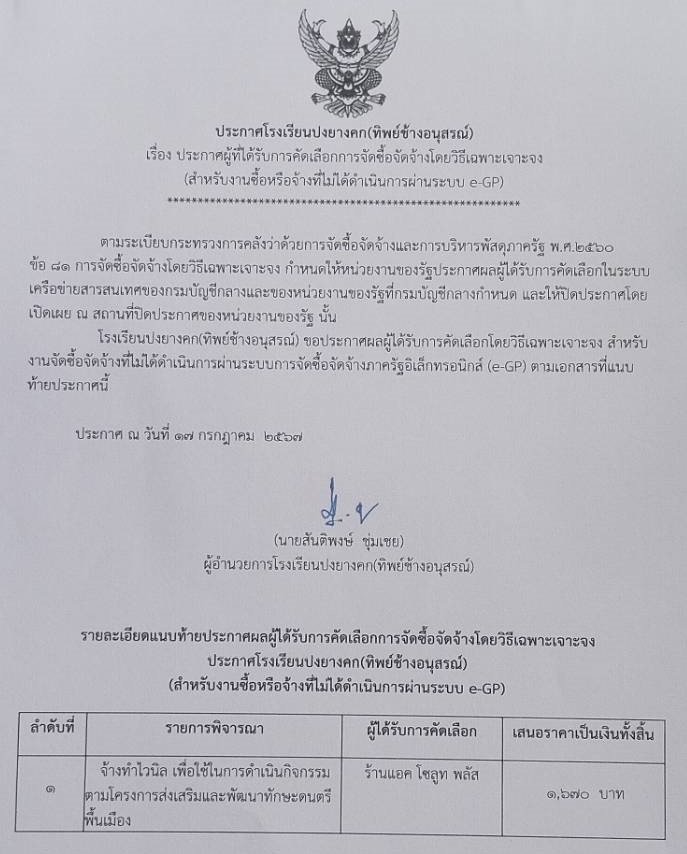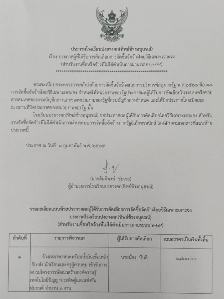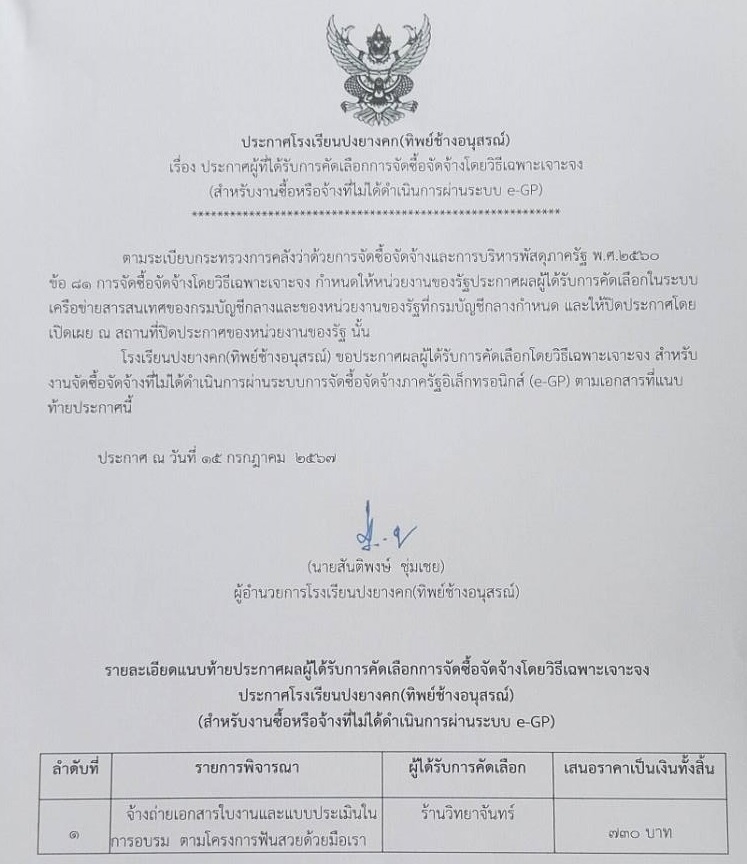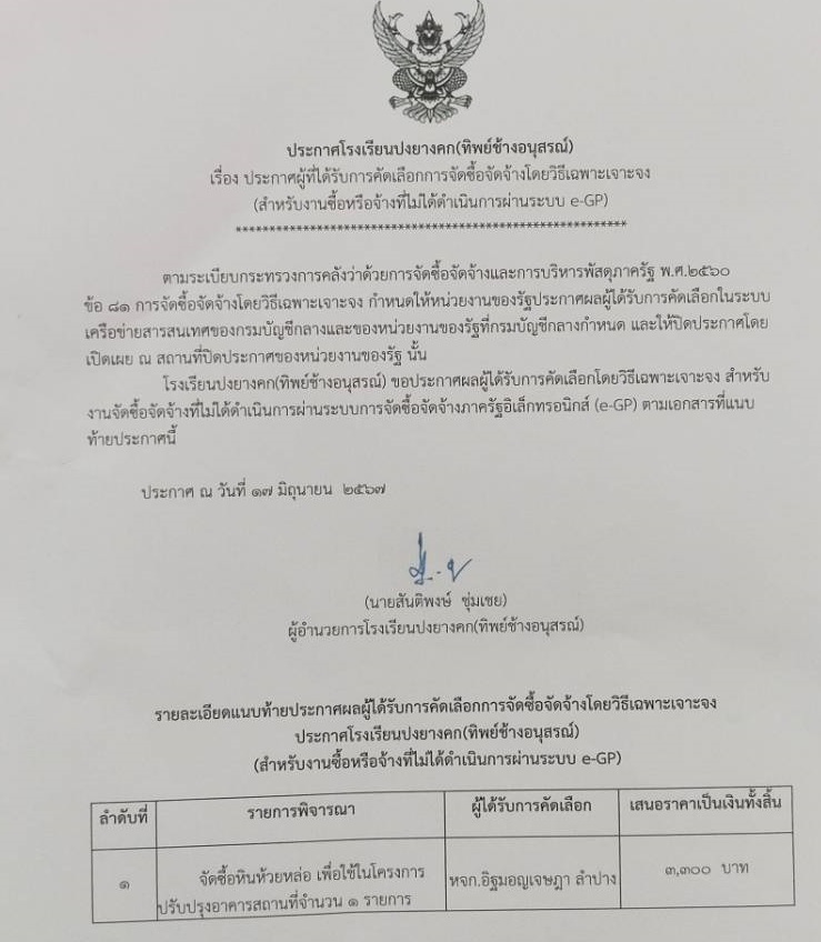 o15 - ประกาศต่าง ๆ เกี่ยวกับการจัดซื้อจัดจ้างหรือการจัดหาพัสดุ